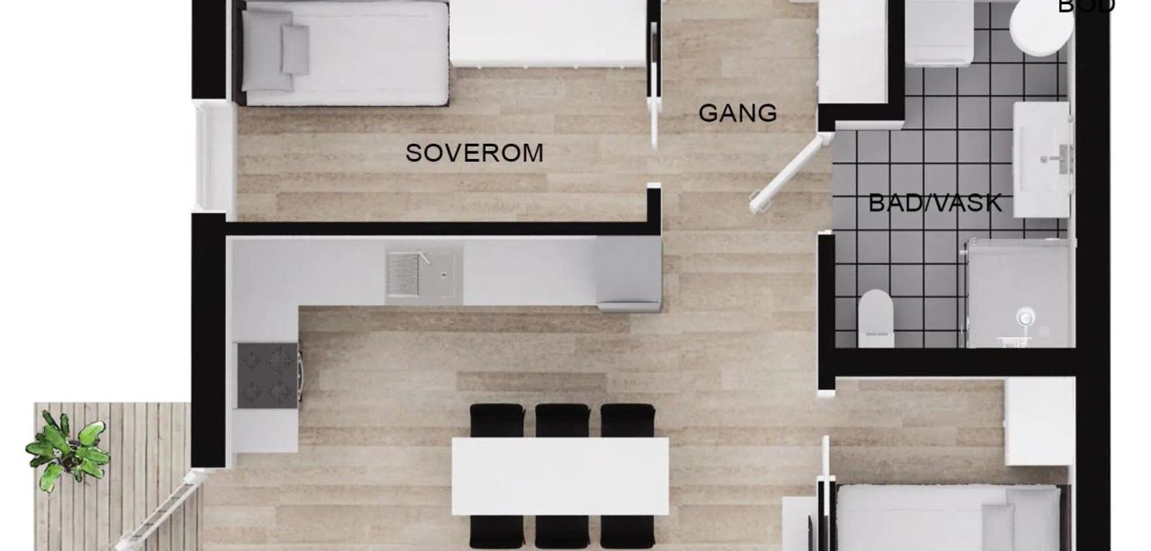To soverom, god plass – og fleksible muligheter