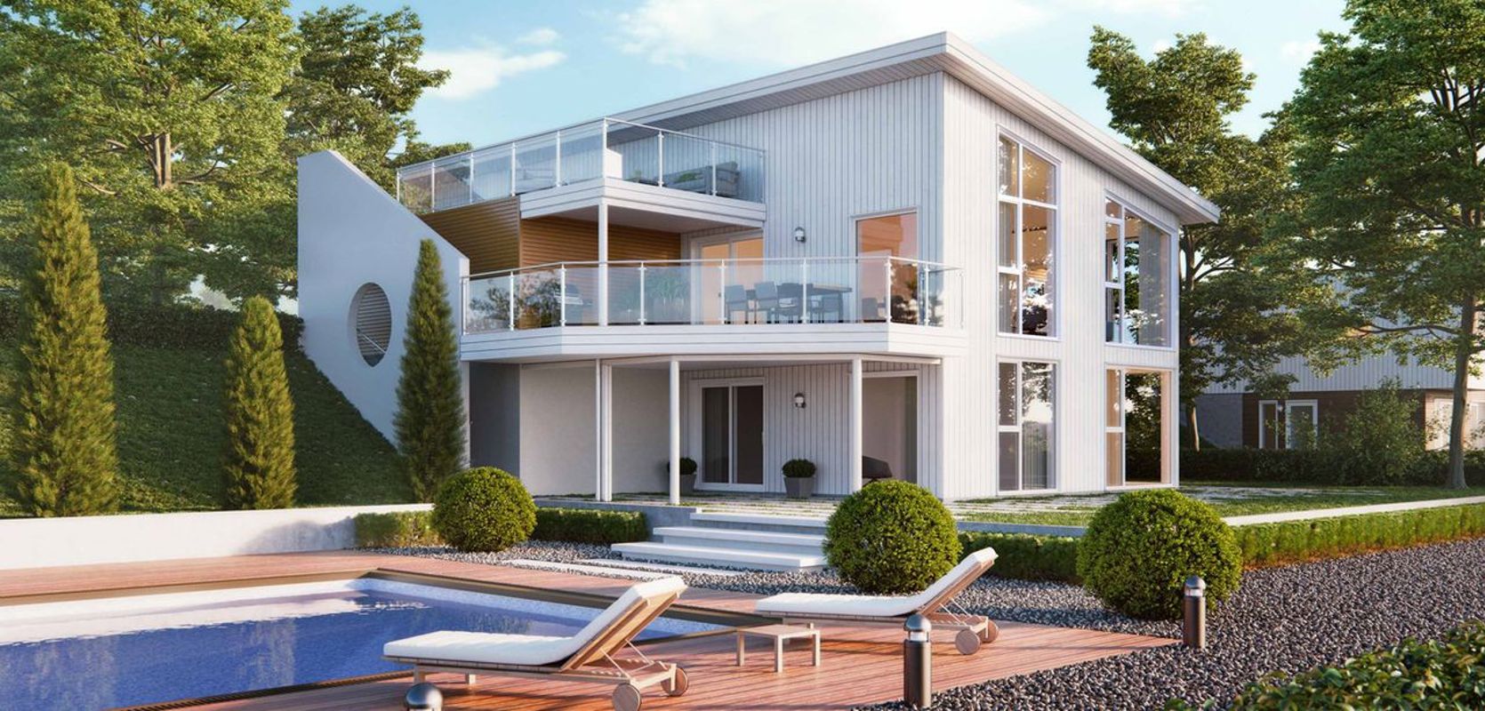 Velkommen til Signatur 302! Dette storslåtte funkishuset er perfekt tilpasset en skrå tomt. Med hele 245 kvadratmeter bruksareal, er dette huset både romslig og funksjonelt.
